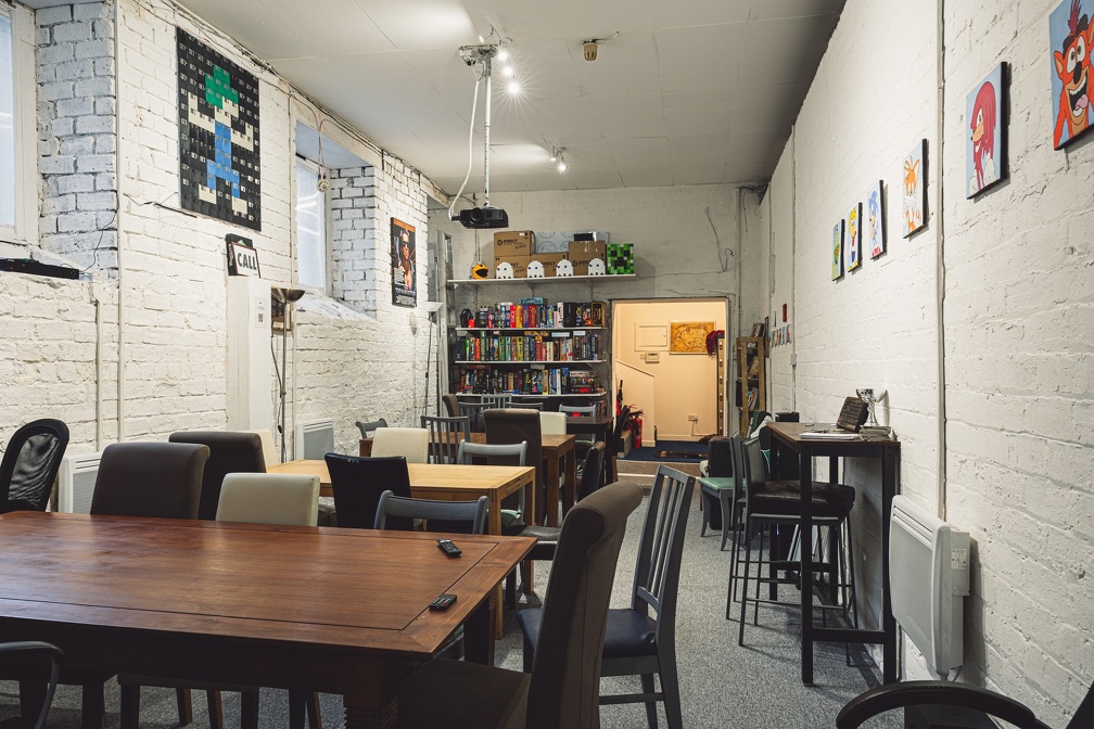 The largest room in the venue. Directly to the right as you enter the premises. It has three high up bay windows to provide light during the day. There are exits east to the Foyer and west to the PC Room.